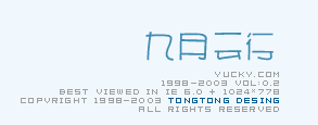 YUCKY.COM 1998-2003 版本:0.2 用IE 6.0或更高版、1024*768的分辨率获得最佳浏览效果 版权 1998-2003 TONGTONG 设计 保留所有权利