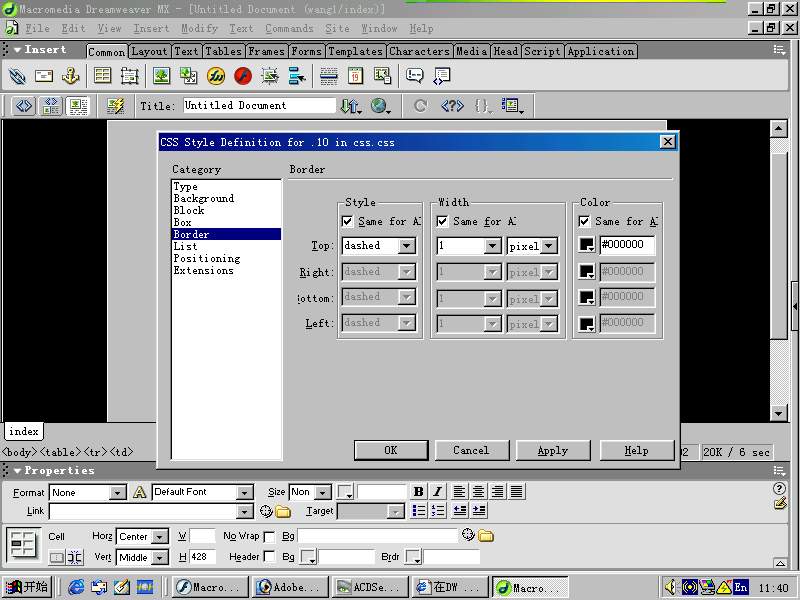 主题: 在DW MX里如何做一条虚线?好象下面那个网址一样。