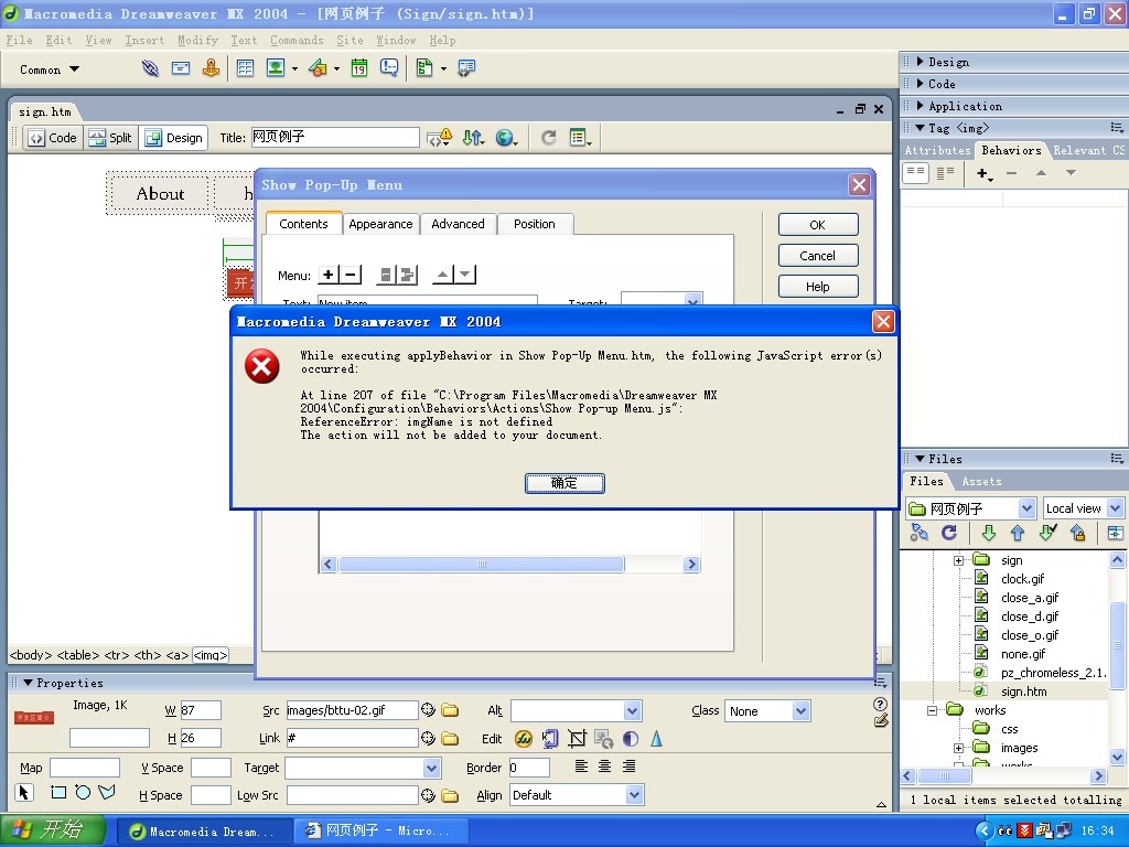 请问我在使用D2004制作弹出式菜单的时候出现下图的错误码提示,应该怎么办?