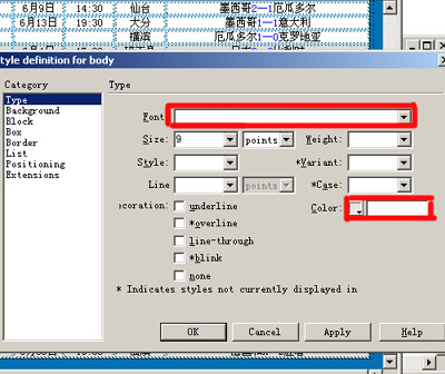 一般只要设置BODY和TD这两个CSS就可以统一页面的所有文字的字体和颜色了!