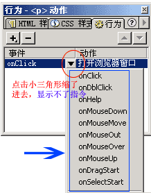 大家好!我的DW里在行为面板上加入鼠标事件,但是,倒小三角形就缩了进去,浏览器我已设了IE4以上的了,我也试过把程序删掉再重新安装都不行,请问有谁愿意帮帮我呢,我已没办法了。 图片如下: