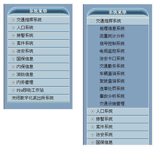 在WEB页面中,点击菜单(图左)后生成下拉式菜单(图右)。