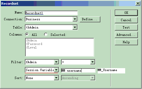 最后,设置reginfo.asp中的记录集用Url parameter来filter