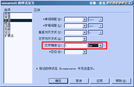 在dw中我找不到让文字在单元格中精确控制两边间距大小的选项,到底有没有,在fontpage中就可以找到,我为这个问题难为了很久,希望高手指点一下。。。。。。。