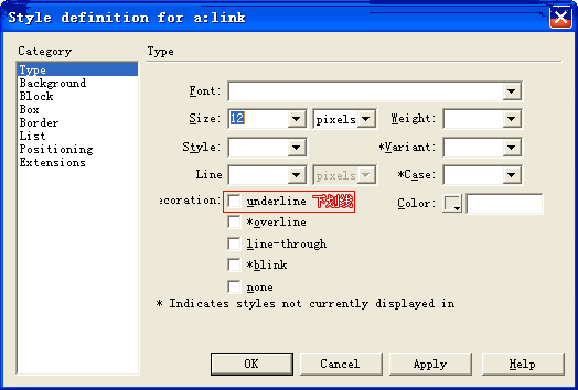 做给你一个图看看更清楚,红线框住的部分不要打钩就没有下划线了~~ 图片如下: