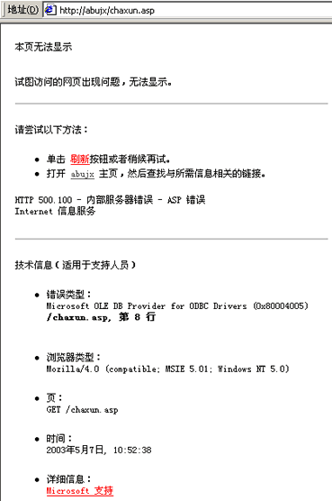 如果原来是好的,我想你近期一定改动了某些文件或者某些设置,你可以按照提示检查chaxun.asp的第8行看看具体情况