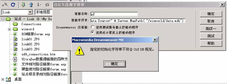 按照5d的一个教程:UltraDev数据源链接的四种方法