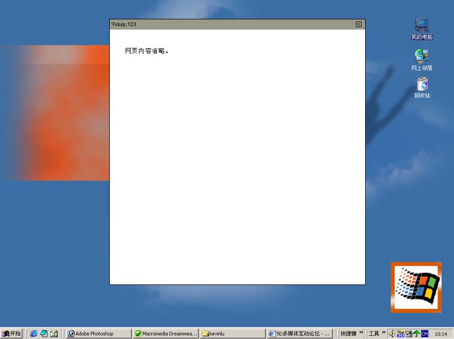行者在上个帖子中说 引用: 一粒沙在上个帖子中说 引用: 一字不漏的全抄上去了,结果出现出错!!! tmp.moveTo(100,100) tmp.resizeTo(600,400) tmp.focus() tmp.location="index1.htm"