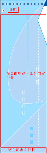 就是中间那部分不随页面长短变化,只是下面的背景随页面伸展。