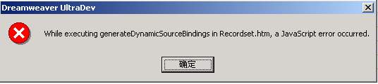 为什么我在进行链接好数据库,在库选取好表后,点确定,经常会出错,出错提示如图,出错提示点确定后,数据库中的字段就不能显示出来,就没有办法进行插入字段与显示字段了?另外操作系统与Dreamweaver UltraDev 4.01重新安装,也出现这样情况,不知网友是否有这种情况出现?可有解决的办法? 图片如下: