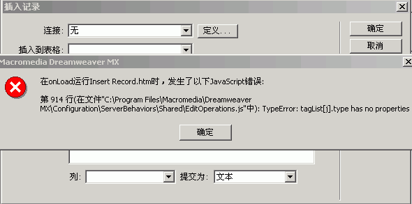 主题: 用DW MX插入记录时出现如下错误,请帮忙!
