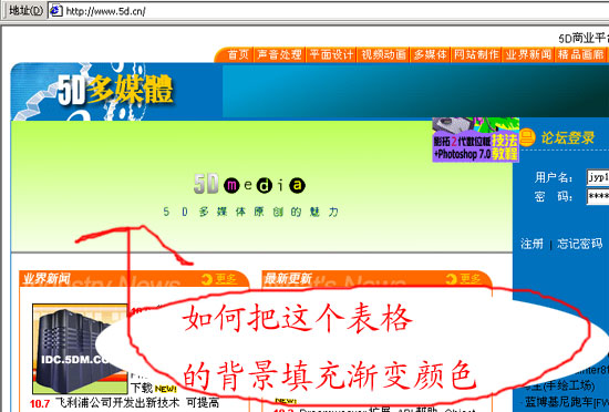 是个动画吧。 如果你要把表格背景做成渐变的,可以在photoshp中做一个图片渐变,保存为jpg文件,在dw中,设置表格背景为那个图片。