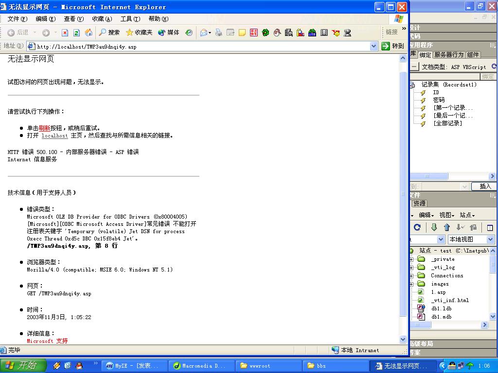这样的问题有很多中原因,比如,你的定义的记录集的要从上一个页面传来的id号,才能显示这条记录的,就会出现这样的问题,