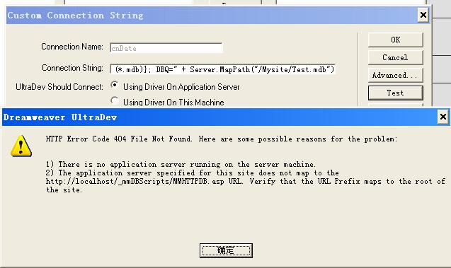 1.我在文本框晨输入如下代码:"DRIVER={Microsoft Access Driver (*.mdb)}; DBQ=" + Server.MapPath("/Mysite/Test.mdb") 选的是Using Driver On This Machine 测试结果如下: 图片如下:  2,如果选Using Driver On Application Server结果就如下: 图片如下:  请问各位高手怎么怎么连接成功数据库呢?