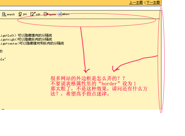 很多的网站为了美观,外面都有一层边框线,请问这种线是怎么设置出来了的啊?请大有教下我:( 图片如下: