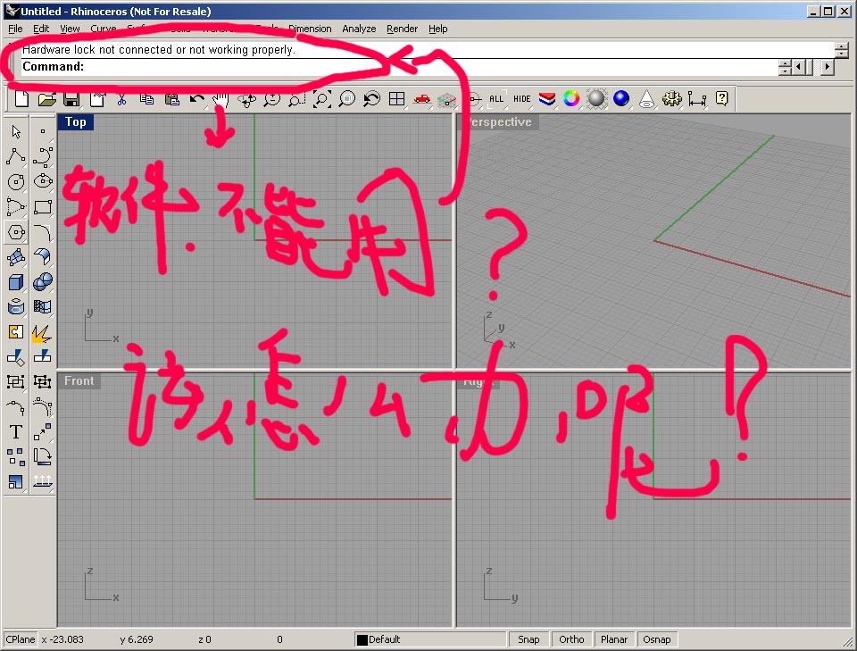 我从网上下载安装了Rhino3.0的版本,但不知为什么不能用, 请大家帮我解决一下?????????????? 图片如下:
