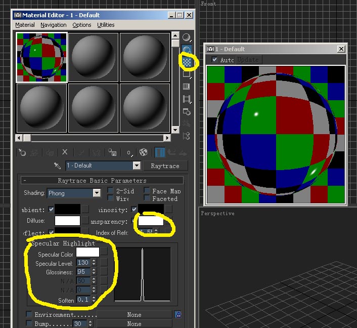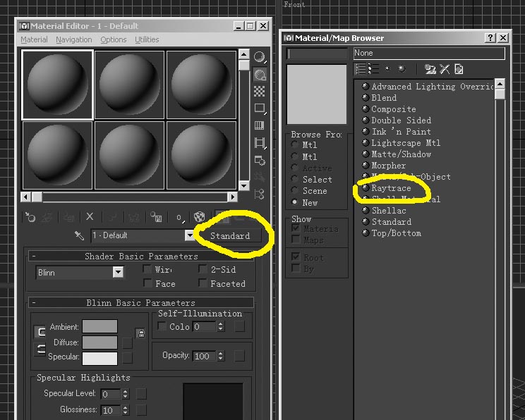 用raytrace材质。 standard---->raytrace 参数: diffus:你想要的颜色 transparency :100(这是不透明度) specular level :180 glossiness :80 就这就行了。