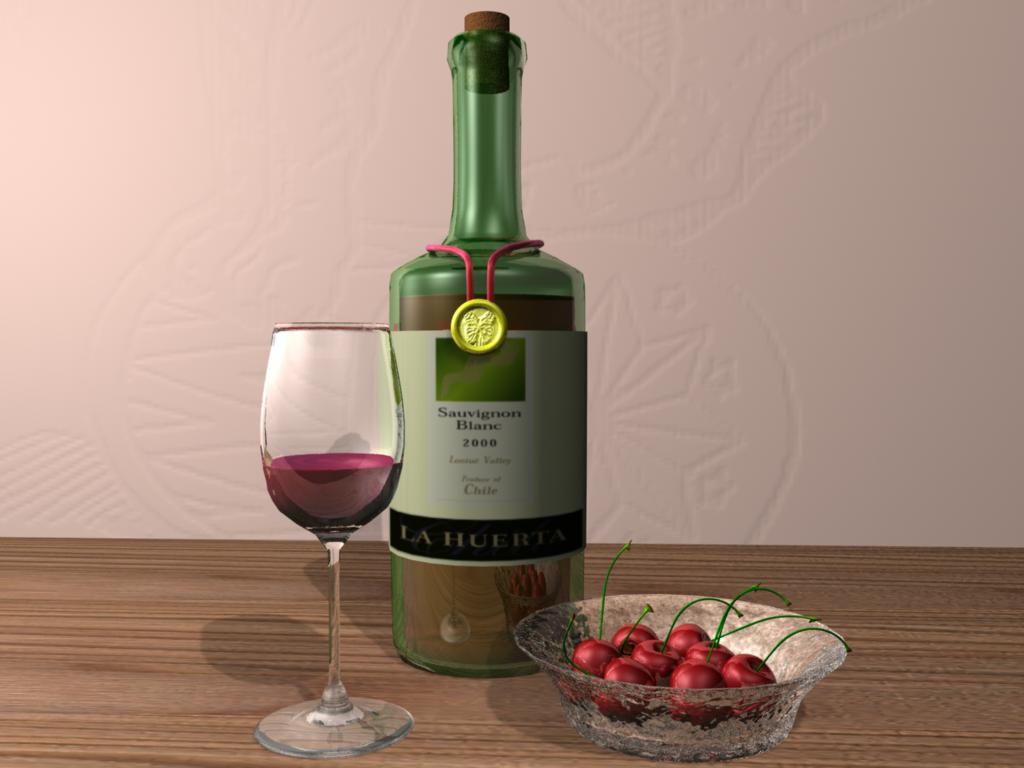 我是新手,我是做不出,提点建议。 酒瓶挂的那条绳子有点问题,感觉象铁丝。