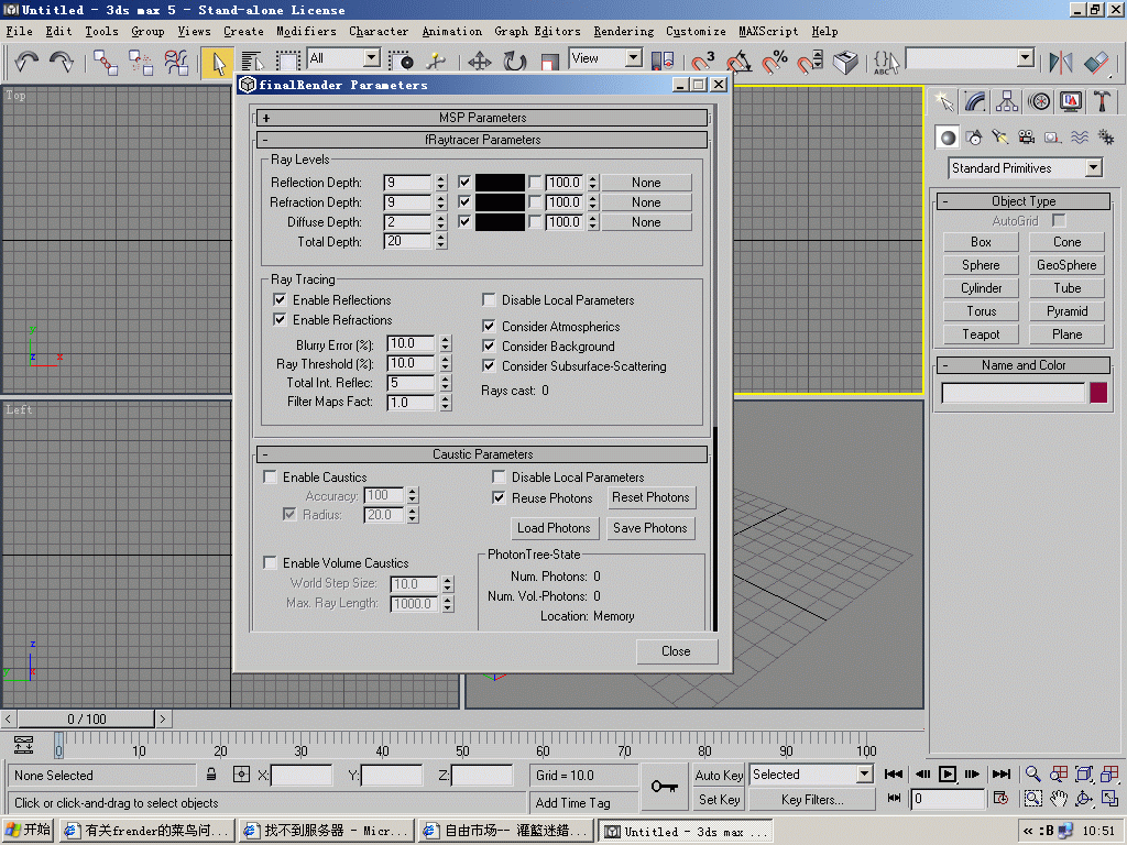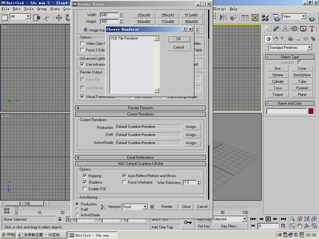我装了frender 1.1for 3dmax5 看了很多文章 说他是自动成为默认渲染器 怎么才能知道是不是f render 渲染的?? 如果不是 要怎么设置才能把渲染器变成f render?? 图片如下: