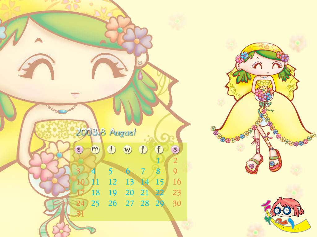 主题: 看看我画的桌面~~很可爱哦~`是八月份的~~