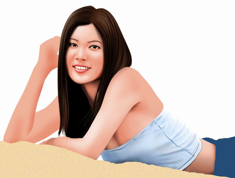 差不多,先找一张漂亮的图片,然后描下来,接着在照着原稿上色,方法自然不用我说了,这只是个练习而已!