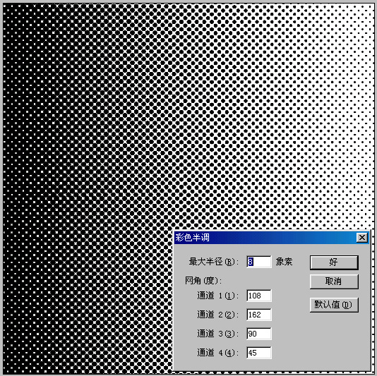 PS里彩色半调里的最大半径象素是以什么来衡量的?