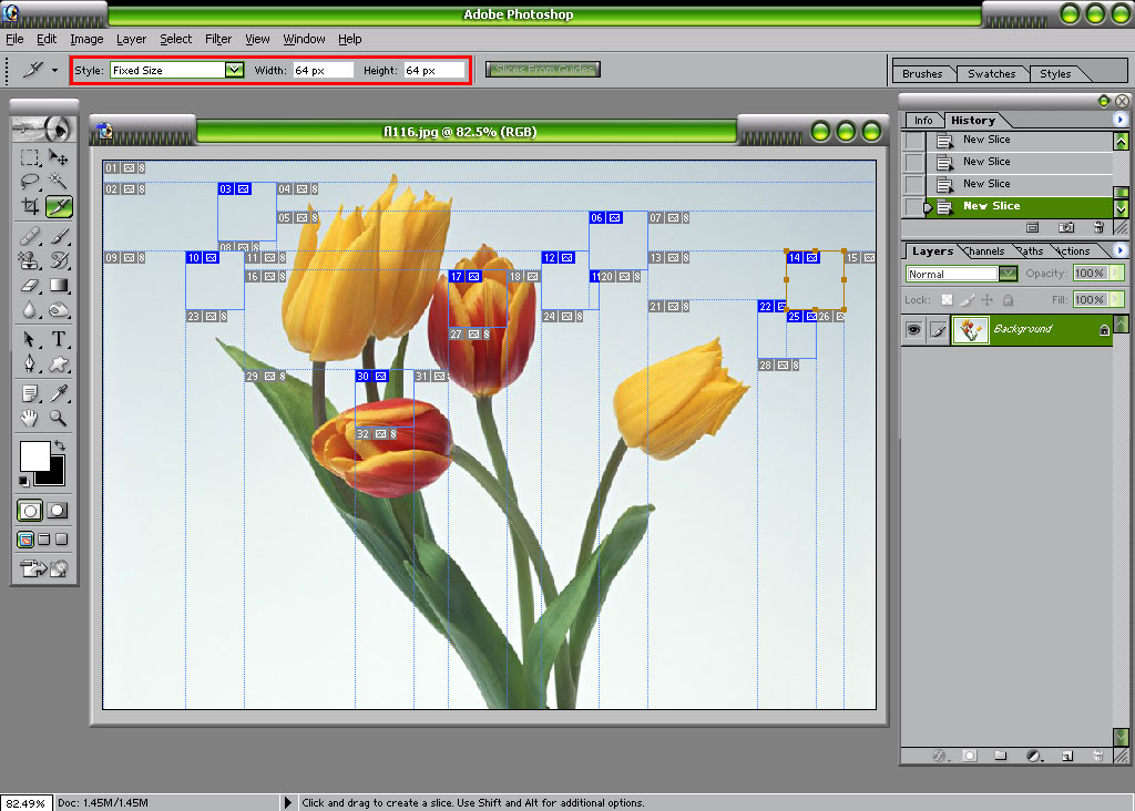 其实切片还是手工切比较好,这样比较准确。特别是需要做翻滚效果的时候,手工切了以后然后用切片调整工具调整切片范围框。