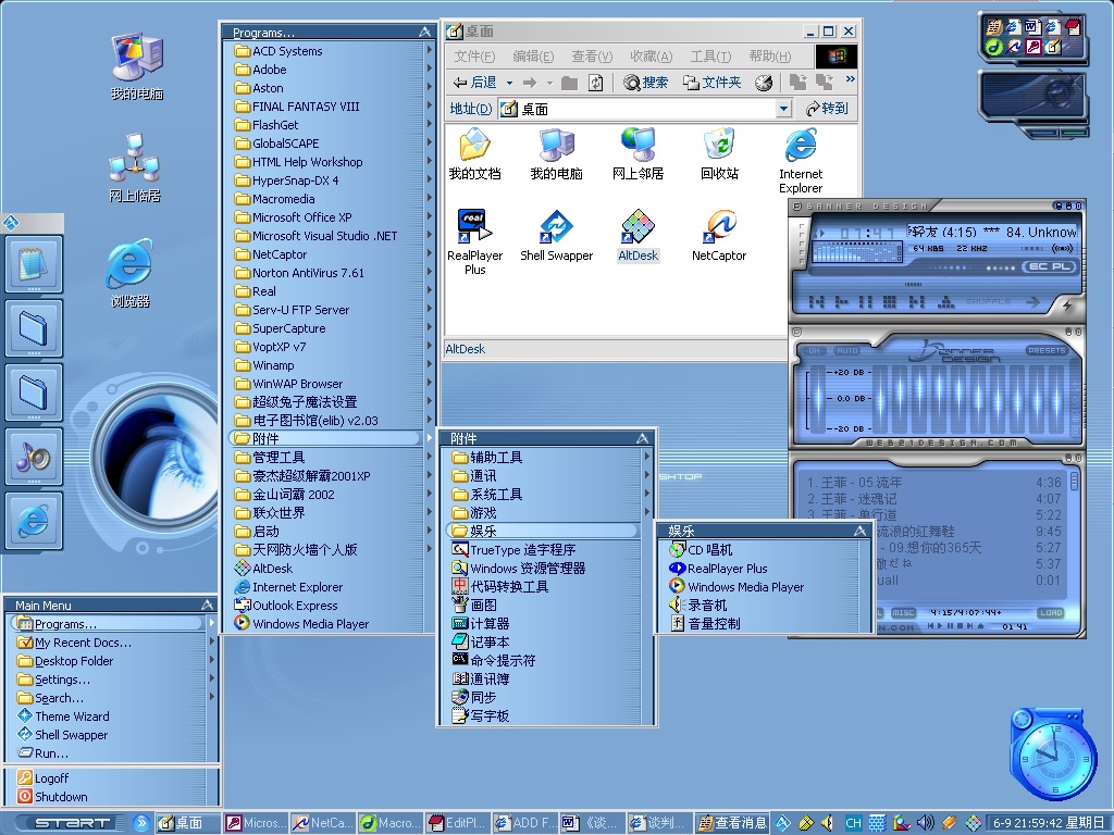 看到大家五彩缤纷的桌面,不把我的放上感觉太可惜了,虽然有人和我的差不多! 图片如下:
