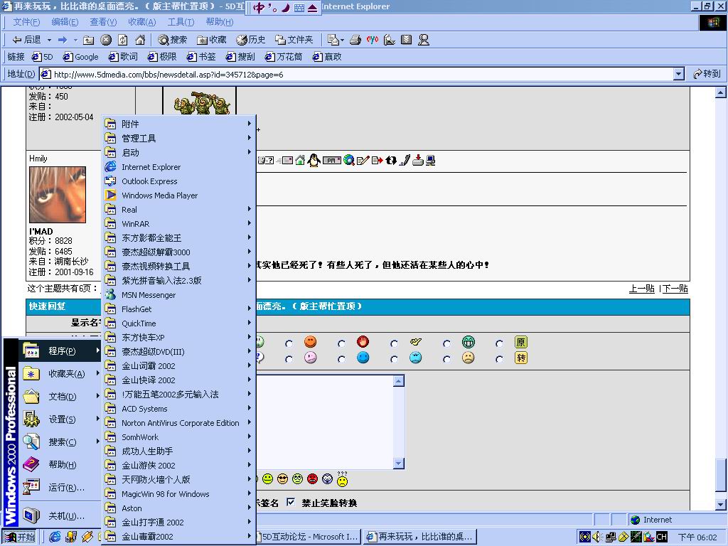 蓝痕在上个帖子中说 引用: 看到大家五彩缤纷的桌面,不把我的放上感觉太可惜了,虽然有人和我的差不多! 图片如下:
