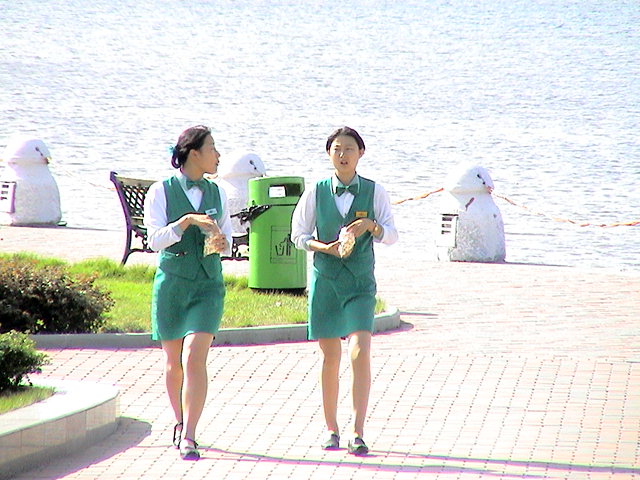 右:今天卫生巾没垫好,走路别扭 左:那边好象有厕所,走,我陪你去