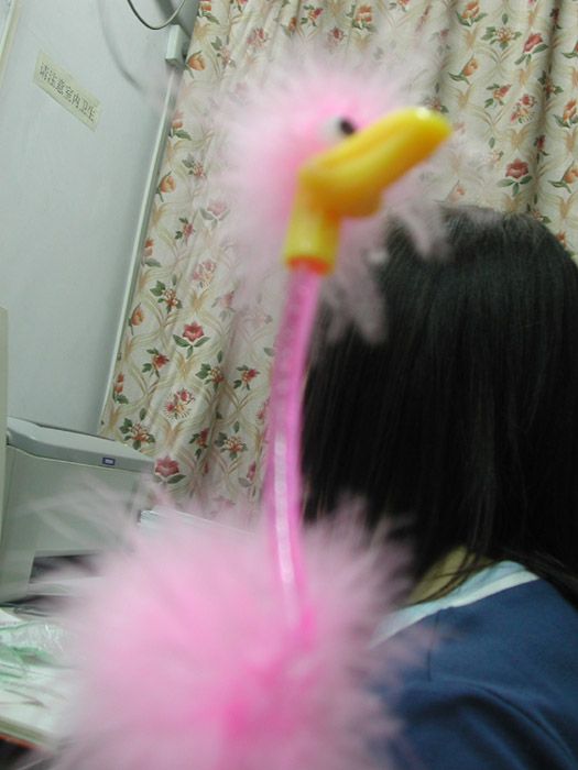 to 伞伞:S SANSAN~把我挂在这儿爆光啊? 看你的驼鸟像疯子一样。  to 大哥:连小妹都不认识了?  to year:镜子是有,只是没在我面前。