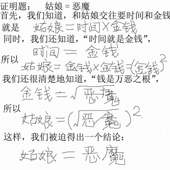 在我们程序员眼里“=”是赋值的意思,而等于是用“==”所以,你不是被迫得出这样一个结论,而是自愿,是强迫性的。这最终的结果和事实是,你把“恶魔”赋值给了姑娘。