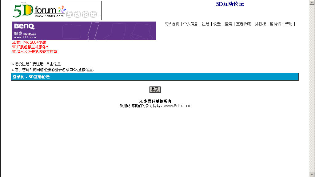 我直接输入www.5d.cn/bbs出现这种情况, 首页登录进来不是这样的. 但我设置了保存cookie的.